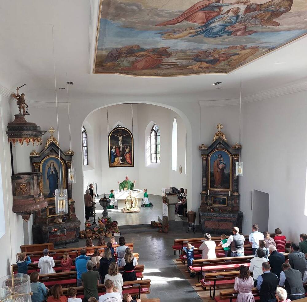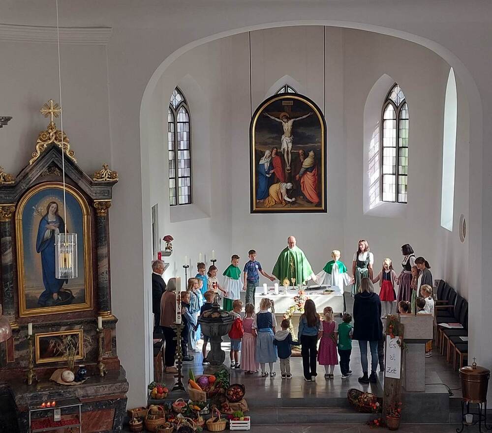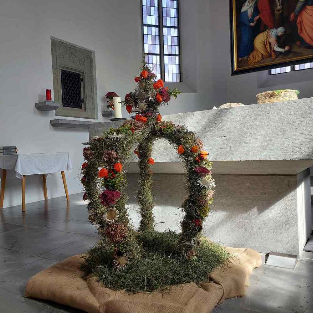Unsere Pfarrgemeinde konnte sich am Erntedank-Sonntag, am 22.09.2024, an einer prachtvollen, von den Bäuerinnen geschmückten Kirche erfreuen. Sie gestalteten mit Texten und Liedern den festlichen Gottesdienst, welcher mit dem Motto „Es ist Zeit“ ganz im Zeichen von „Danke zu sagen“ stand. Anschließend wurde die Pfarrgemeinde bei einer wunderbaren Agape von den Bäuerinnen verköstigt.